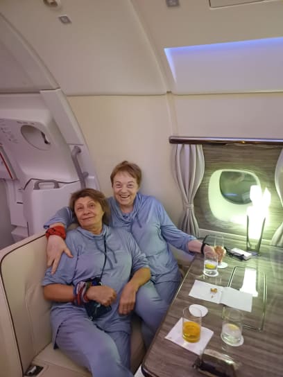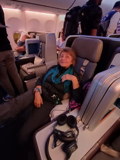 Lidičky, neberte to prosím jako nějaké vytahování, letíme business class poprvé...ale je to obrovský rozdíl!!! Osobní servis, když chceš, tak šampaňské, výběr z jídel servírovanych NS porcelánu, bílé látkové ubrusy na stolečcích a ubrousky...pak si vysuneš sedadlo úplně na rovinu, máš měkký polštářek a deku, lehneš si na bok a spinkáš...a když máš žízeň či chuť, jen si řekneš...teď jsme v Dubai a snídáme v loungi...úžasný výběr jídel...a sedíme u zurčící fontánky...atd., atd....a Drobku: jíst v letadle jsme zvyklé...🤩...teď nás ovšem čeká těch 17,5 hodin letu...