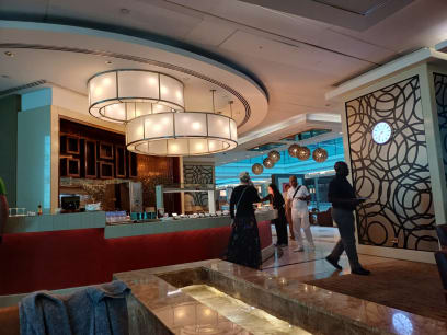 A to nemluvím o menu hodném zážitkové restaurace, výběru vín, koktejlů, koňaků ...a taky zde máme bar, kam se můžeme jít rozptýlit...a taky máme kosmetické přípravky Bulgari, hedvábná pyžama atd...noooo...tohle jsem opravdu nečekala...tak připíjíme sklenkou Moët Chandom!!!