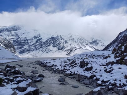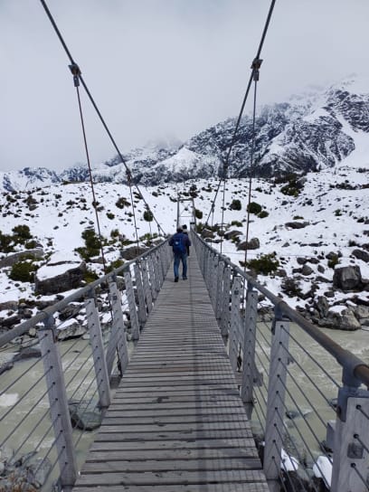 Vydali jsme se za slunce na Hooker Valley trek...pod nohama dost slušná vrstva sněhu...ufff...docela náročné...ale prostě nádhera!!! Teď už se zatáhlo a začalo mrholit,takže jsme měli štěstí!