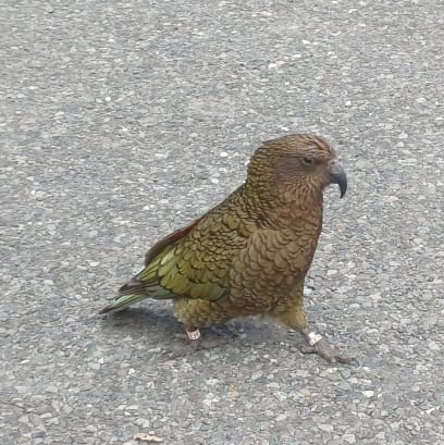 Papoušek Kea ...správně Nestor Kea...jediný druh alpských papoušků...hnízdí v norách, je velmi inteligentní...všežravec.