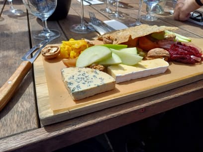 talíř čerstvého ovoce a talíř boutique sýrů s krekry, oříšky a sušeným ovocem
