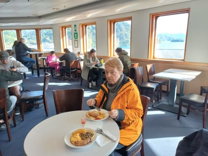 Nejdeštivější místo světa nás přivítalo podmračeným nebem...aby se posléze rozsvítilo slunce...plavba trvala 2 hodiny a uteklo to "jako voda"...spousta vodopádů, úžasné skalní stěny...a taky malí tučňáčci a lachtánci ...faunu se ale nedařilo vyfotit
